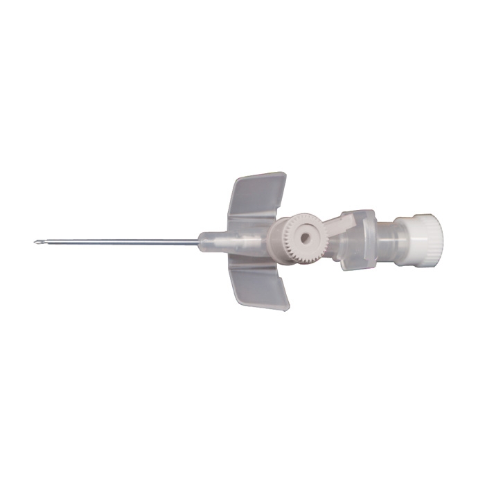 4-    قسمت پروانه ای را با چسب به پوست ثابت می کنیم ( بهتر است چسب ضد حساسیت یا میکروپور باشد )، بعد به کمک انگشتان یک دست روی محل قرار گرفتن تفلون در رگ فشار آورده و با دست دیگر سوزن را خارج می کنیم .
